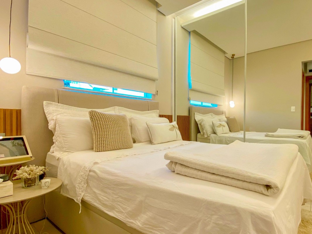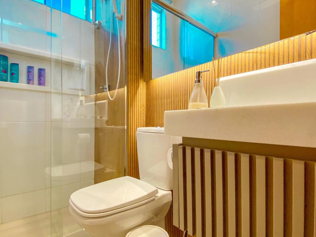 Acabamento impecável com marcenaria de alta qualidade, piso em porcelanato, rebaixamento em gesso e iluminação planejada.