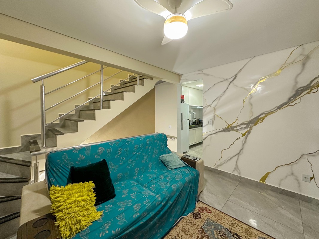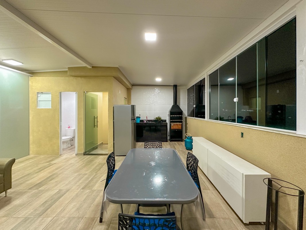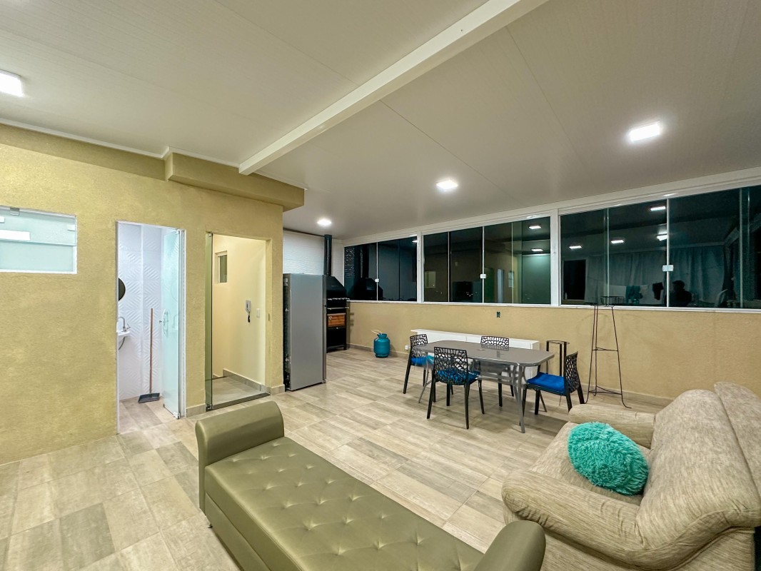 2º pavimento: Espaço amplo de convivência, com lavabo, churrasqueira a carvão e área de serviço.