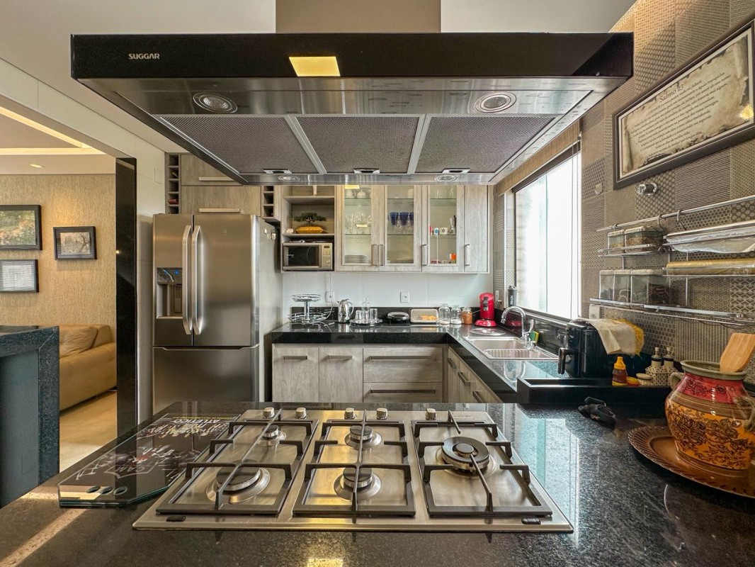 1º pavimento: Sala ampla para 2 ambientes, cozinha em conceito americano com ilha e marcenaria completa. Na área intima são 3 quartos, sendo 1 suíte com varanda integrada e um banheiro social.