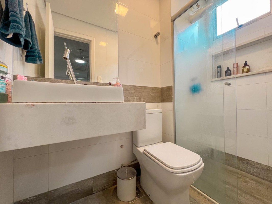2º pavimento: Sala de TV climatizada, 1 suíte climatizada com armários planejados. Área externa parcialmente coberta, com churrasqueira e ducha.