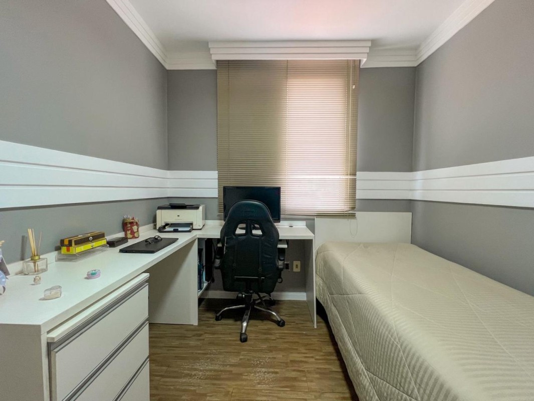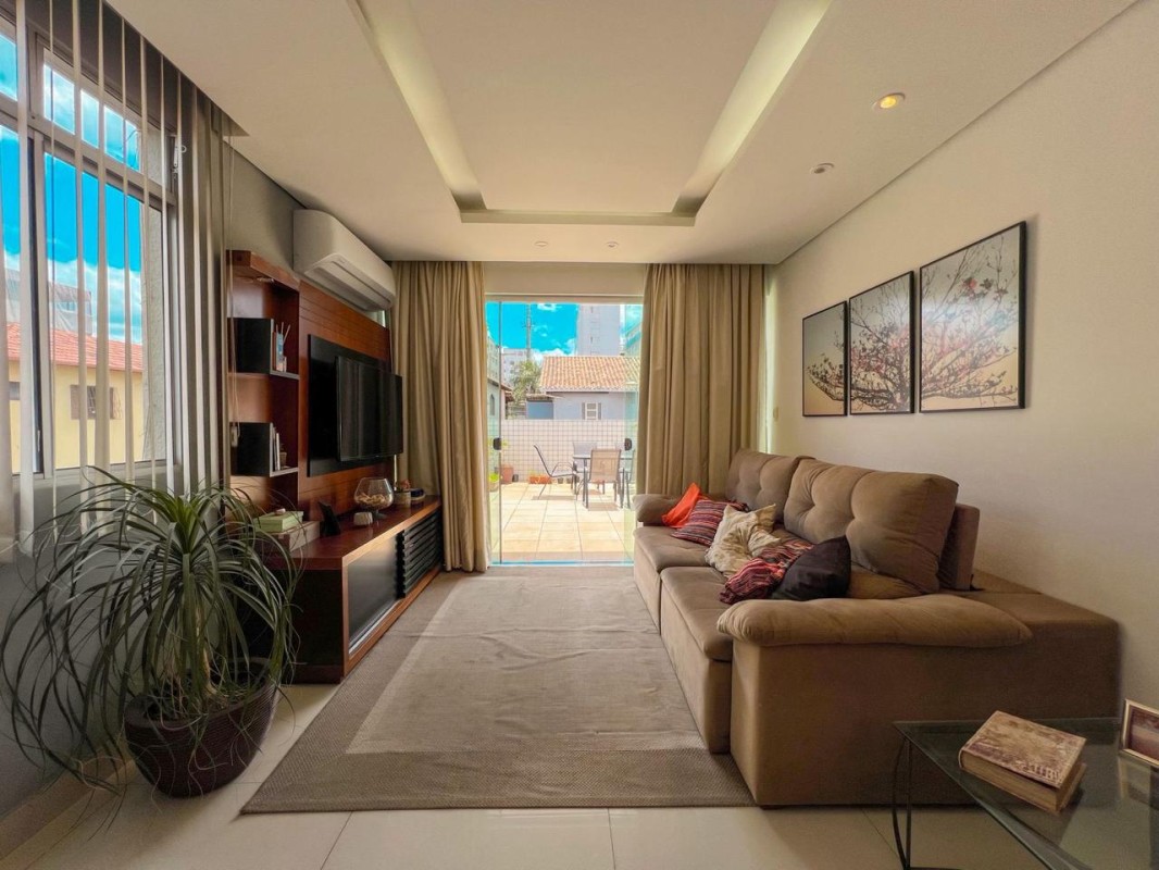 1º pavimento: Sala ampla para dois ambientes, cozinha americana moderna, com móveis planejados, ilha central e área de serviço. Na área intima são 3 quartos, sendo 1 suíte, todos com armários planejados (1 dos quartos foi convertido em closet) e banheiro social.